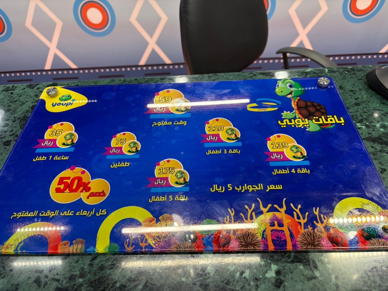يوبي.. عالم من المرح والسعادة!يوبي اسم لامع في عالم الترفيه، استُلهم من شخصية السلحفاة المرحة التي تنشر البهجة بين الأطفال.مدينة يوبي مستوحاة من أعماق البحار، حيث الخيال، التشويق، والإثارة! حيث  تحتوى على العاب حركية  -  قفز  و متاهة و غيرها الكثير من الالعاب الممتعة و الشيقة